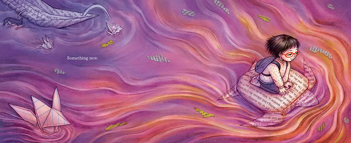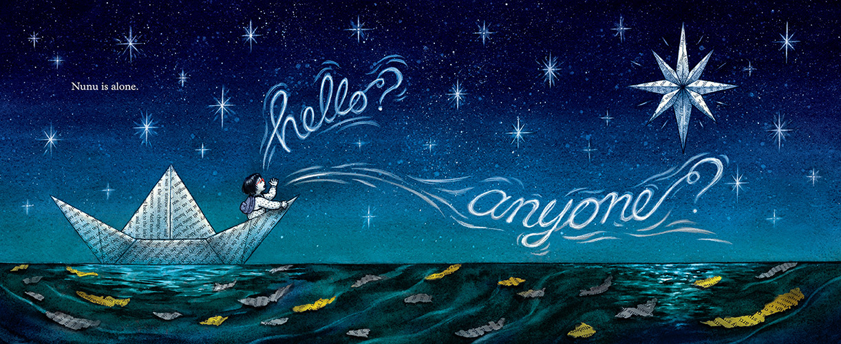 Nunu doesn’t understand, so when her emotions feel too big for her, she makes her boat out of paper origami and sails away. Out at sea, she navigates somewhere new and with the help of her origami friends, she is able to mend what is broken and find her way home.